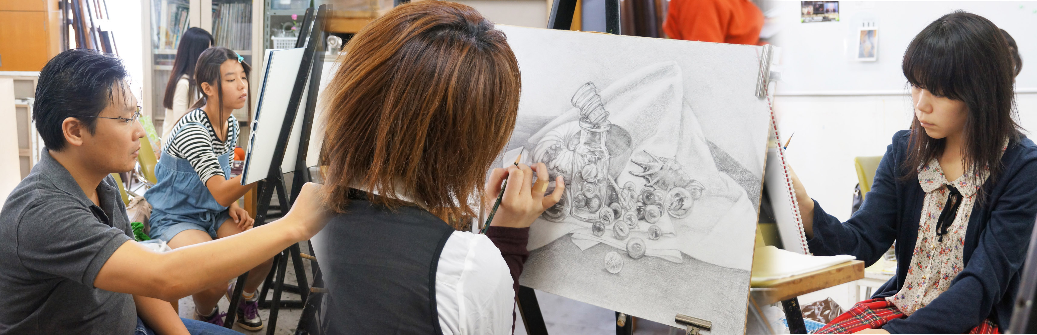 描く画材や内容、レベルに合わせて個別に指導いたします。