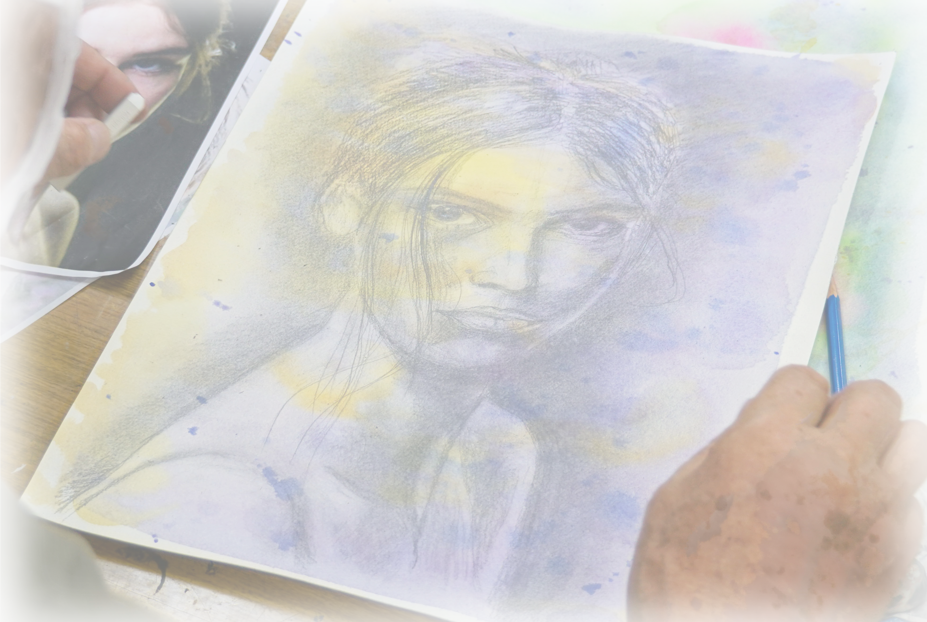 描く画材は、デッサン、油彩、アクリル、色鉛筆、パステル等。